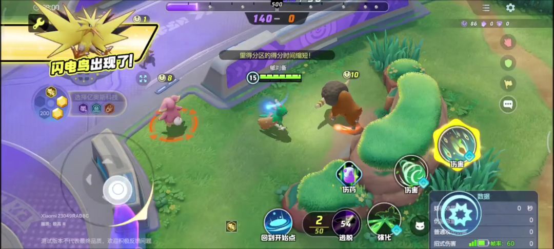 当在没有破坏对方得分点时进入对方路线时移速会变慢!所以我方的目标就是通过投分来破坏对方得分点从而拿下胜利!当宝可梦进入对方得分点后逃脱按钮会变为得分按钮,点击即可得分!