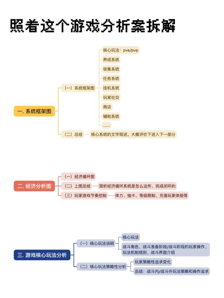 1. 系统框架图:首先,要了解游戏的核心系统,比如PVE/PVP玩法、养成、收集、任务、社交等,这些都是游戏的骨架。