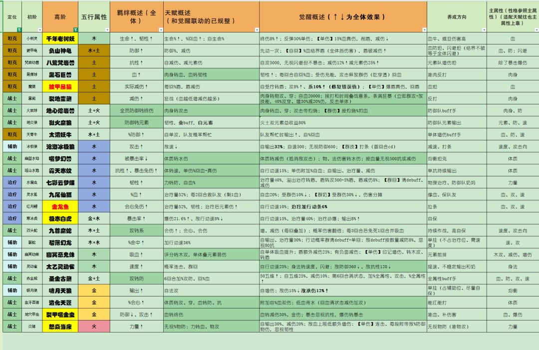 主要是定位、羁绊、天赋、觉醒概述。