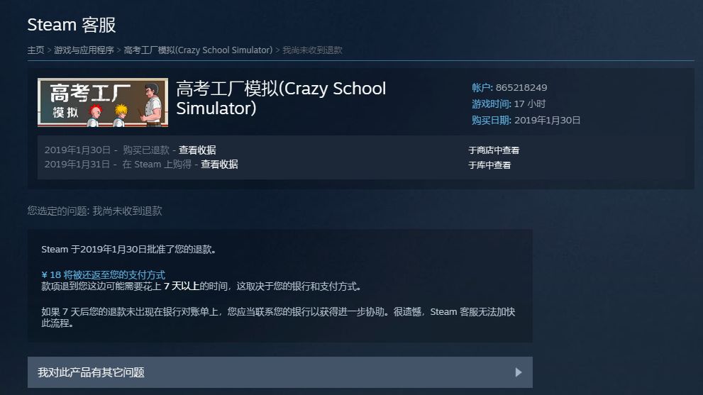 别期待了,我在steam买过不好玩,2019.1.30申请退款,今天我突然去steam客服那里,特么看到有一个问题--尚未收到退款!!!想要退款,还得联系银行,这特么离不离谱啊,18块钱不多但也不少,我就当喂了狗。 听说是制作组19年7月份跑路了啊,那还不如狗,说他们是狗,还侮辱了狗呢,就像屎一样。
