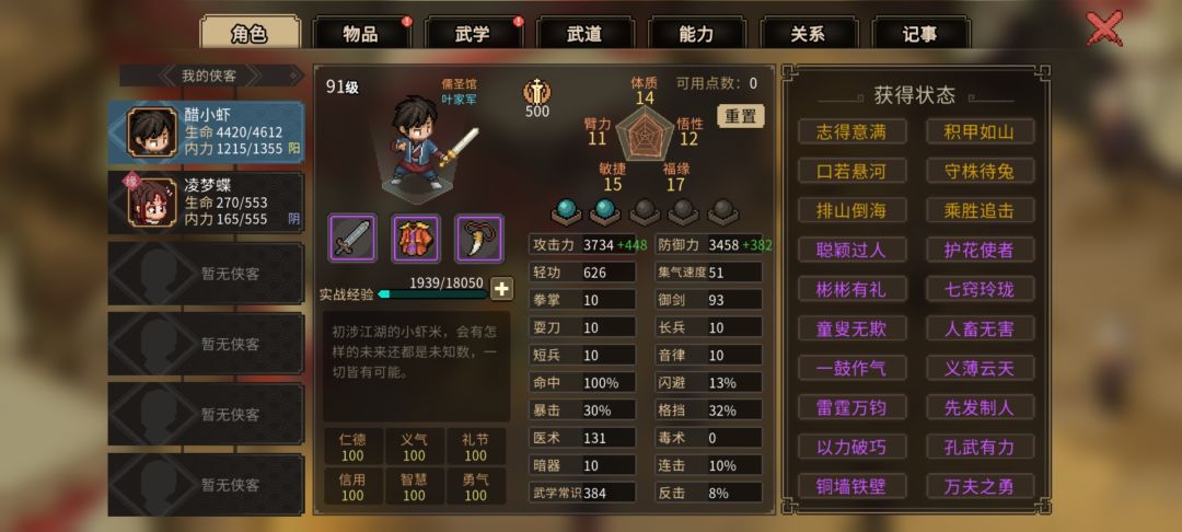 于是开了这个模组,退出了剑阁,加入了圣儒馆,成功结缘了凌梦蝶,但没多久就出bug了,我是加入了叶家军的,现在成为原皮了。