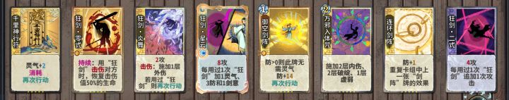 成型阵容就是图上这套,通过靠御空连环提供防御,加上万邪的虚弱以及狂零的回血,达成一个很难死的局面,然后通过二次方的狂剑成长(星云剑意成长叠加狂二段数成长)加上破绽的放大在第二轮达成斩杀。