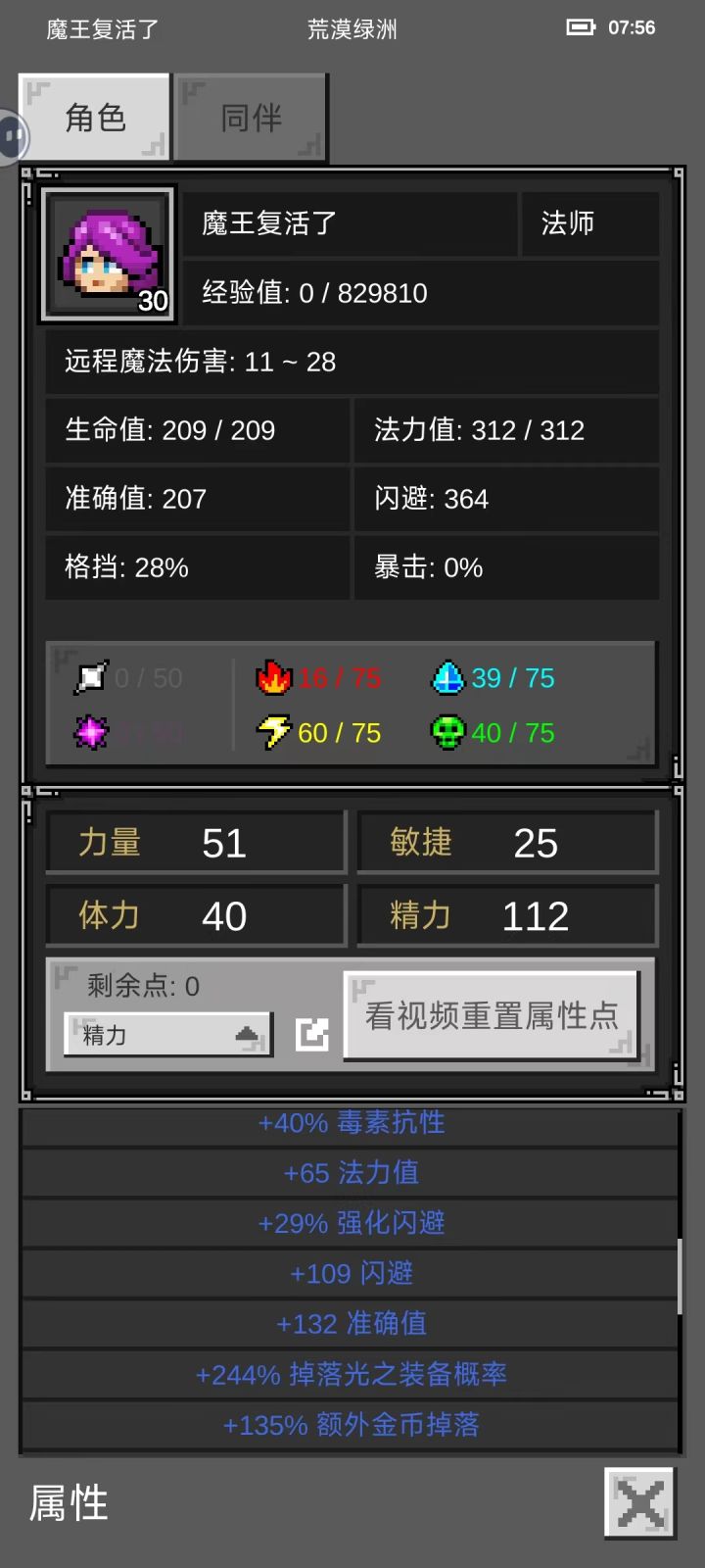 1:属性上,主精力,适当体力,力量够穿鞋子就行,这里说一下,20品级的金属鞋就有光掉了,只需要50力量,没有必要穿70力量的护胫,可以省20点的属性,能提供40蓝上限。