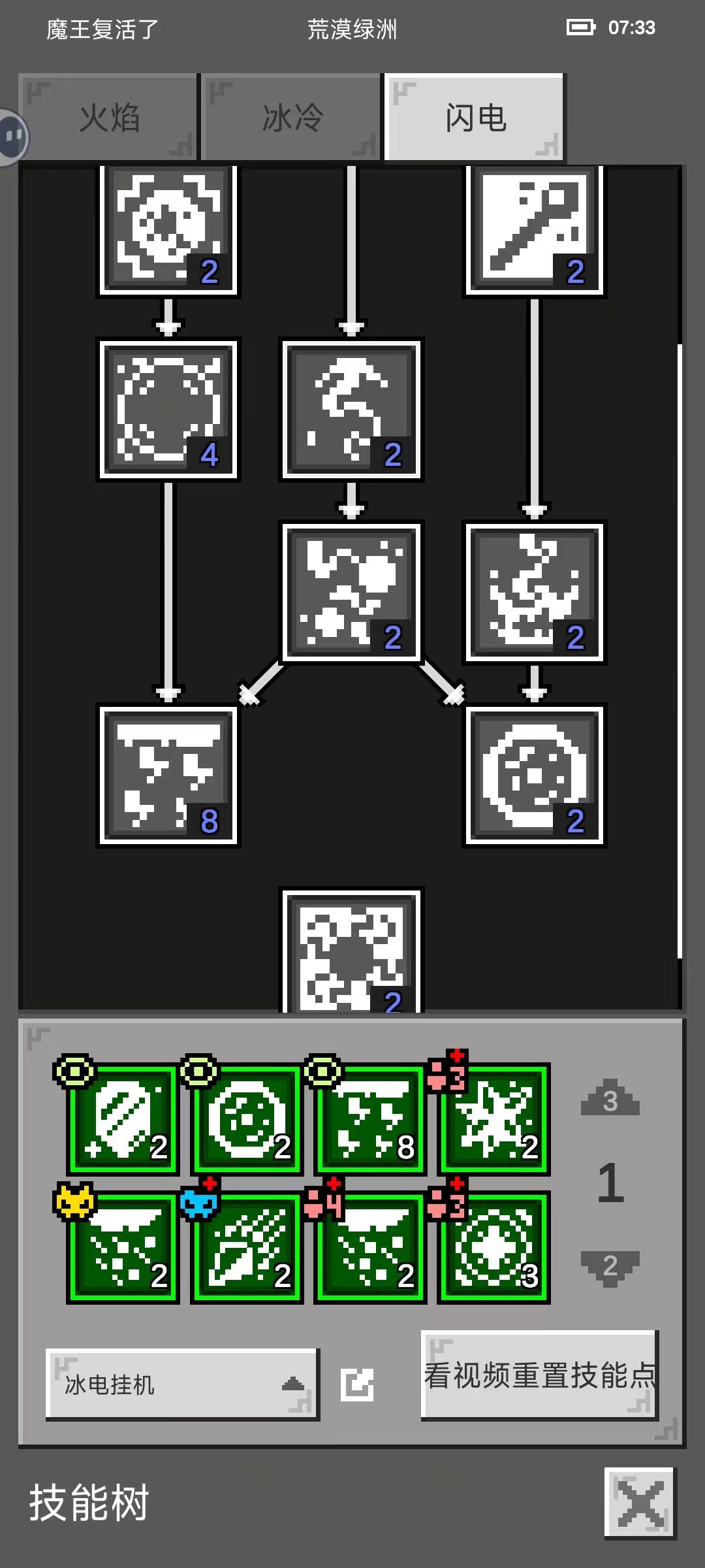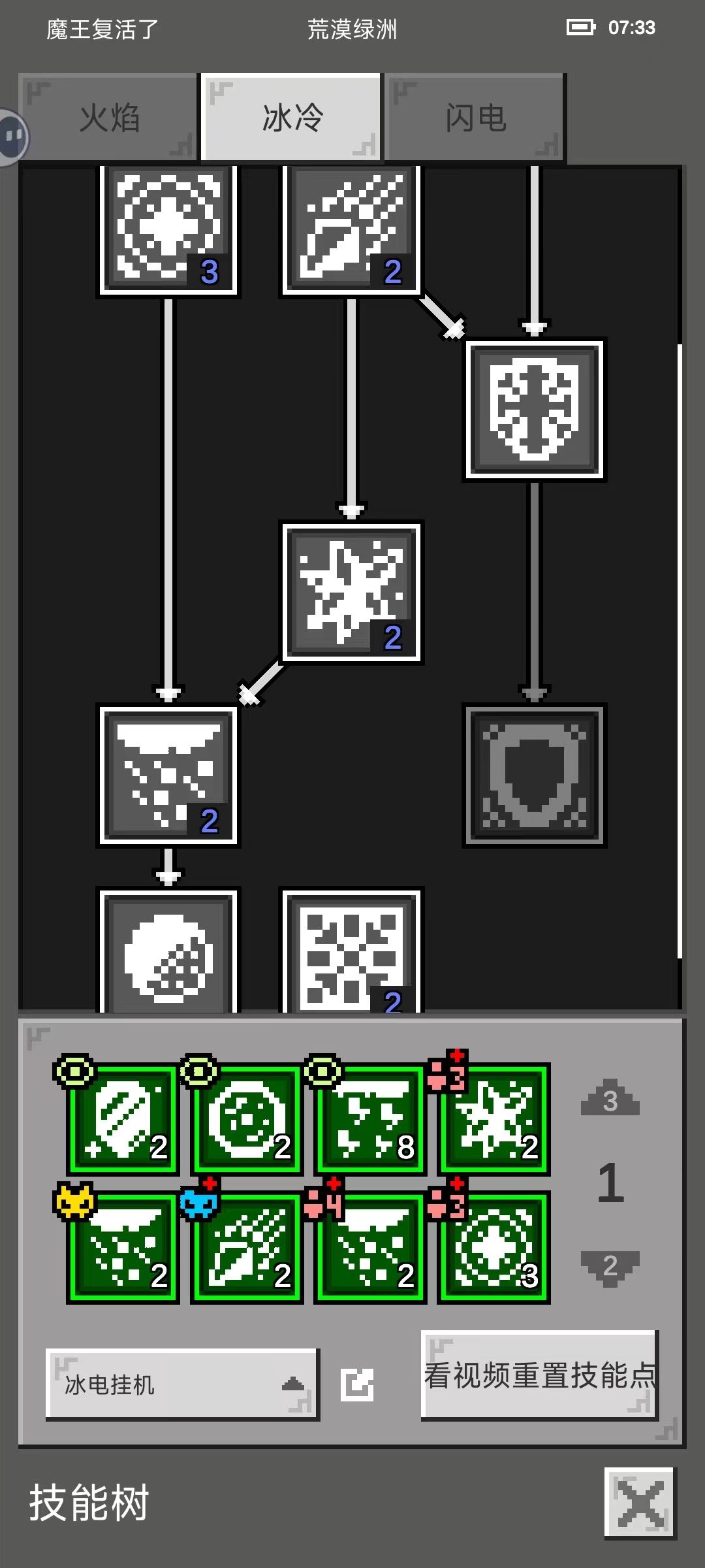 技能上,点出暴风雪打BOSS用,点出雷电风暴小怪用,点出能量护盾,低血高蓝,有能量护盾不会暴毙。冰封甲1点,这个冰封甲不会让怪物100%冻住,怪物会抵抗,但抵抗两个字为啥是白色的我没搞懂。