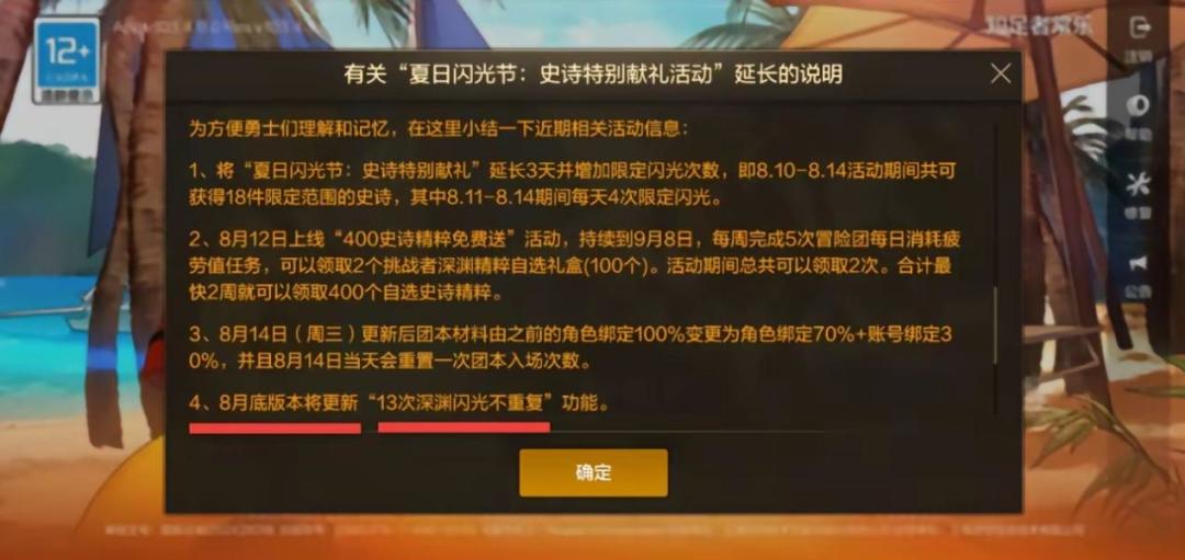 深渊派对是我们日常当中所不可缺少的一个常规玩法,我们所需求的50史诗装备大部分都是由此而来,其最重要的是“史诗防具套装”,如果没有达成套装,往往就少不了长期以来的深渊挑战,或是直接“放弃治疗”,选择刷“深渊精粹”来进行合成缺少的部位。那么今天,主要讲一下8月底至今,在深渊派对上都有哪些改动来助力玩家史诗毕业。 一、“13次深渊闪光不重复”功能