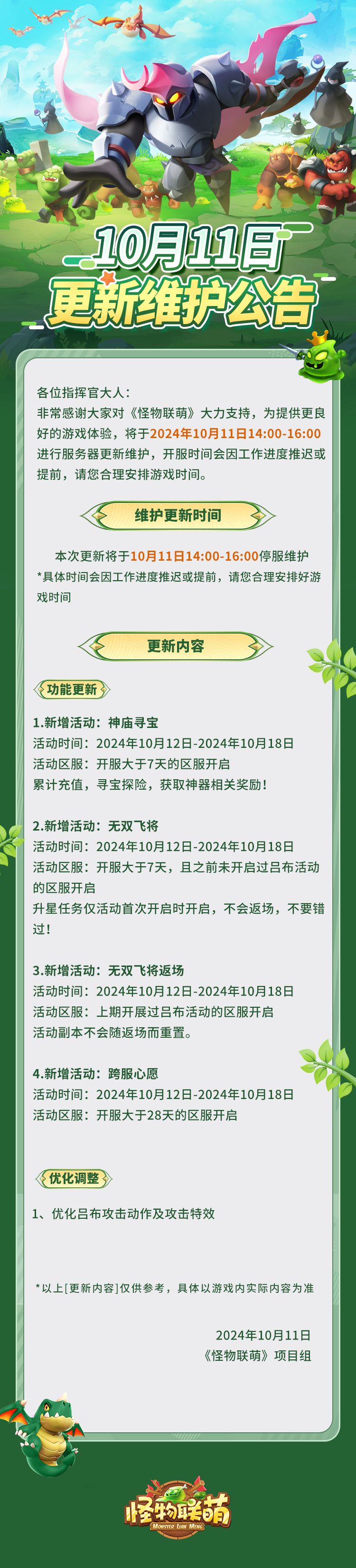 10月11日更新维护公告