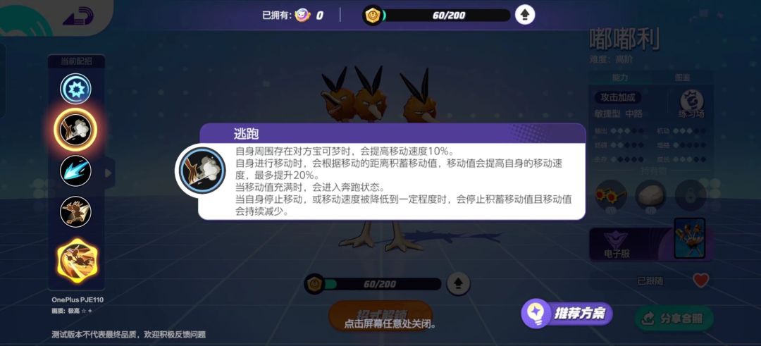 嘟嘟利在大集结中属于敏捷型宝可梦,推荐分路为中央区域。嘟嘟利可以利用自身被动移速快的优势与对方宝可梦进行对线牵制、在团战中出其不意的进场收割以及偷分等,战略性和上限都非常高。