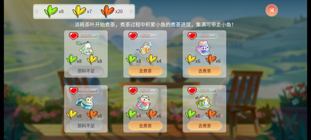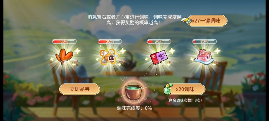 奈奈每关买水壶和阳光去关底,不升级,关底可能有宝石换鱼,调味每次花1开提高概率