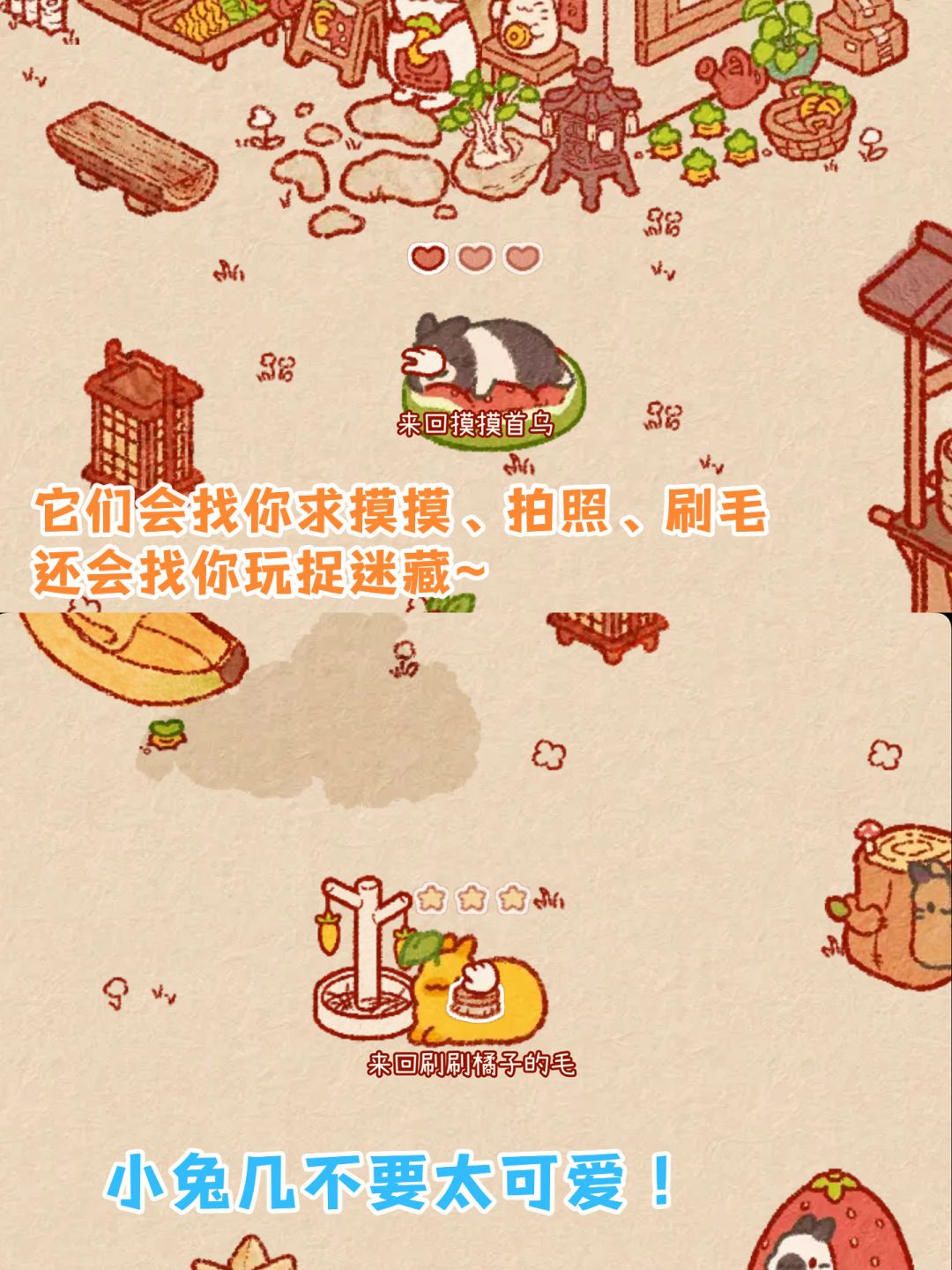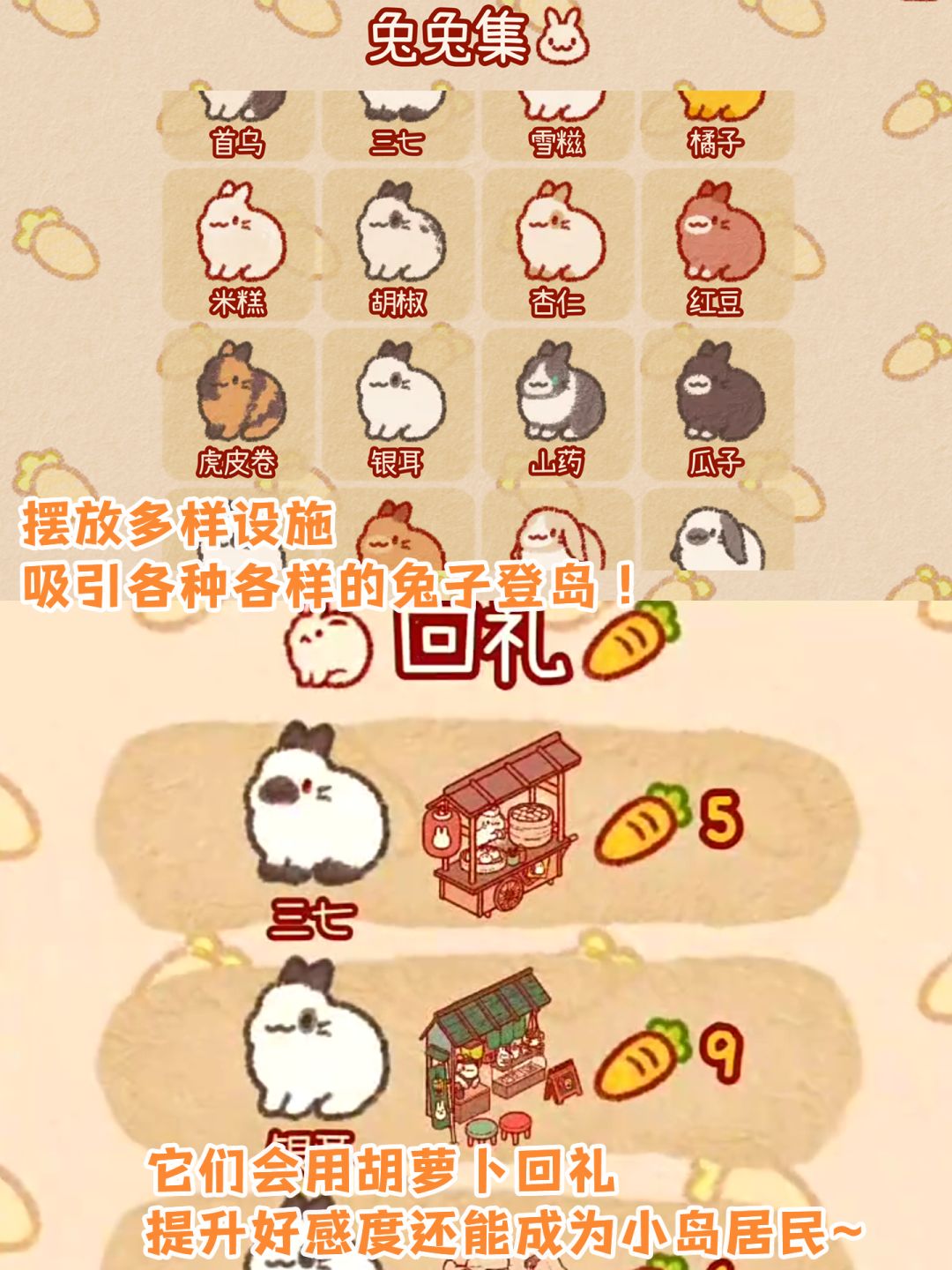 每一只兔子都有名字,它们玩完后会给你胡萝卜作为奖励,它们会要你给它们刷毛、拍照、摸摸❤,提升好感度后它们还能够成为你岛上的永久居民~