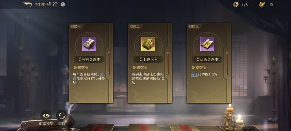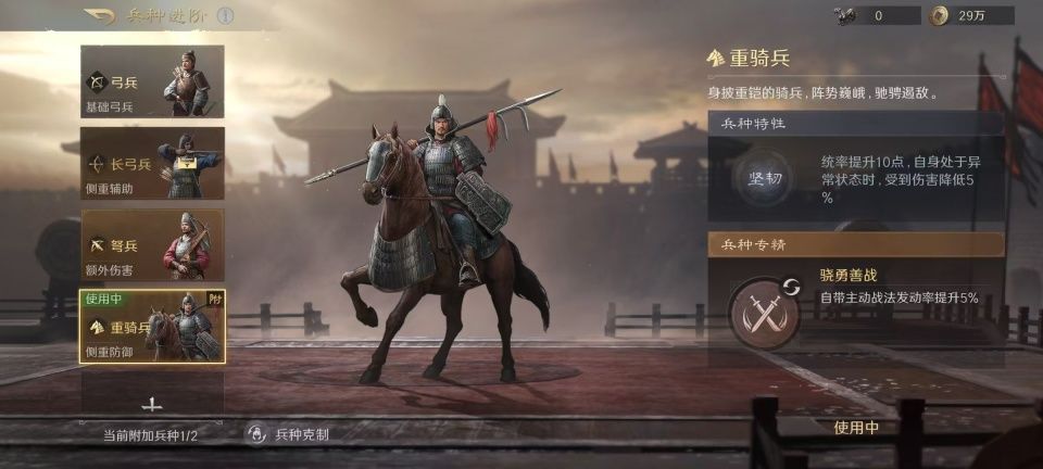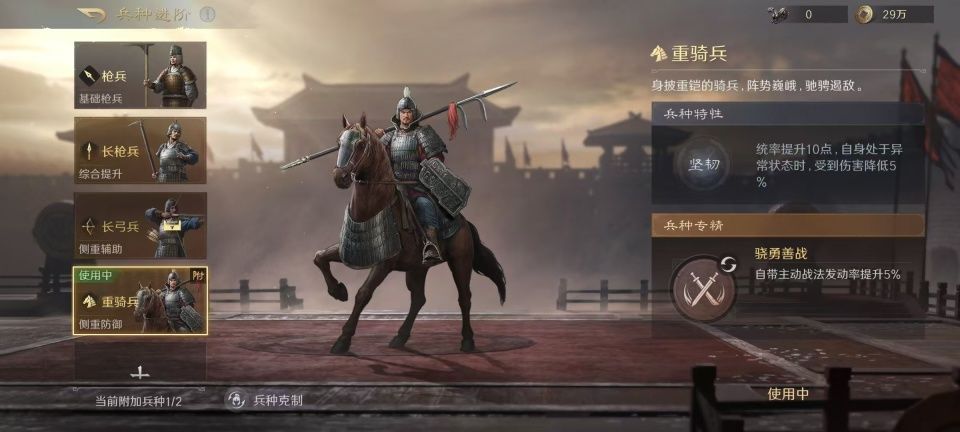 鲁肃战法:划湘分荆+运筹帷幄+束手无策。韬略库:受势善本+励心善本+治国论(专属)。重骑兵特性坚韧,专精点亮骁勇善战。