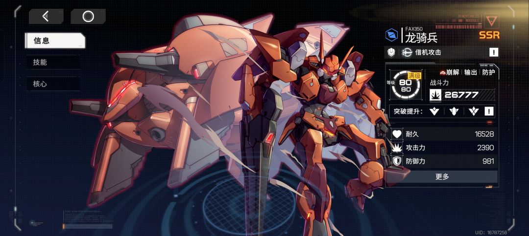 且驾驶员类似“专武”,对机甲适配要求高。