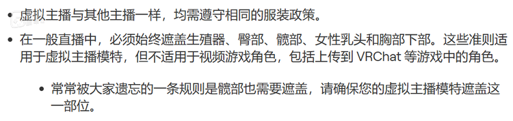 如果说Twitch打击儿童色情的力度提升完全可以依靠VTuber自己的风险意识进行规避的话,那么直播平台对裸露服装的严苛规定恐怕是大部分虚拟主播不得不直面的困境与难题。即日起,Twitch要求所有主播必须以不透明的衣物遮盖从腰部到下腹部和臀部的范围,VTuber自然也不例外。