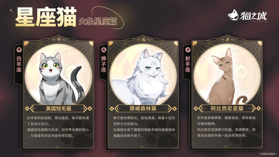火象星座集合咯~调查官快来看看,心仪的猫咪是否与你的性格很匹配呢?