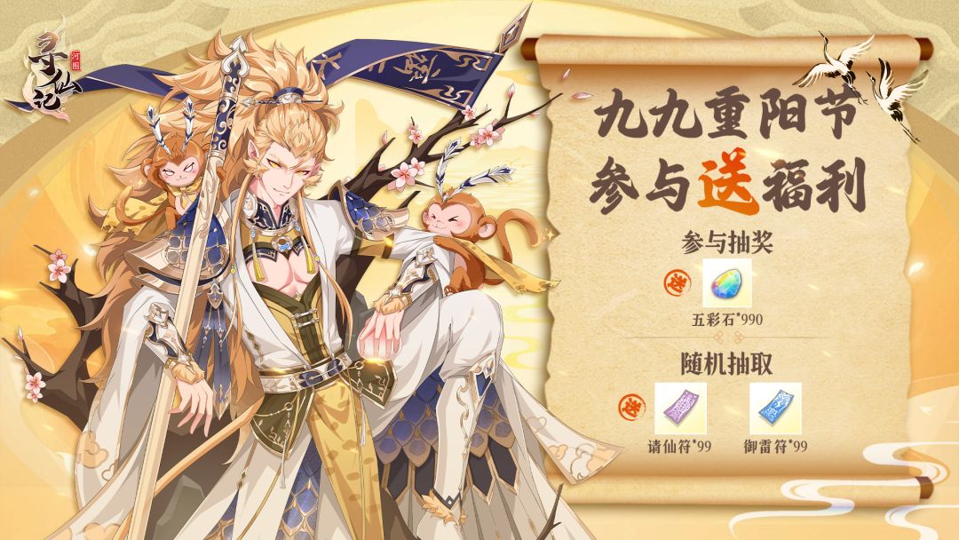 我们将抽取9位仙君大人送出:请仙符*99、御雷符*99