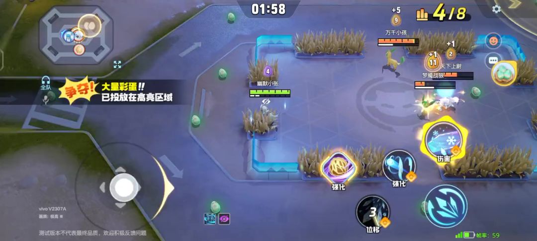 草团会被伤害打碎,所以进场尽量不要进集火点。宝可梦死亡会掉一半“蛋”的数量,所以尽量保证自己不要死亡。