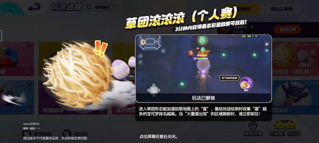 游戏中一共八个人各自为战争夺地图中的“蛋”通过捡地图上的“蛋”或击杀敌人捡敌人掉落的蛋,时间结束最后拥有“蛋”数量最多的宝可梦为获胜者