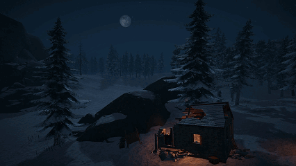 夜幕降临,在我们前行的途中突然发现了一间隐蔽的篝火小屋
