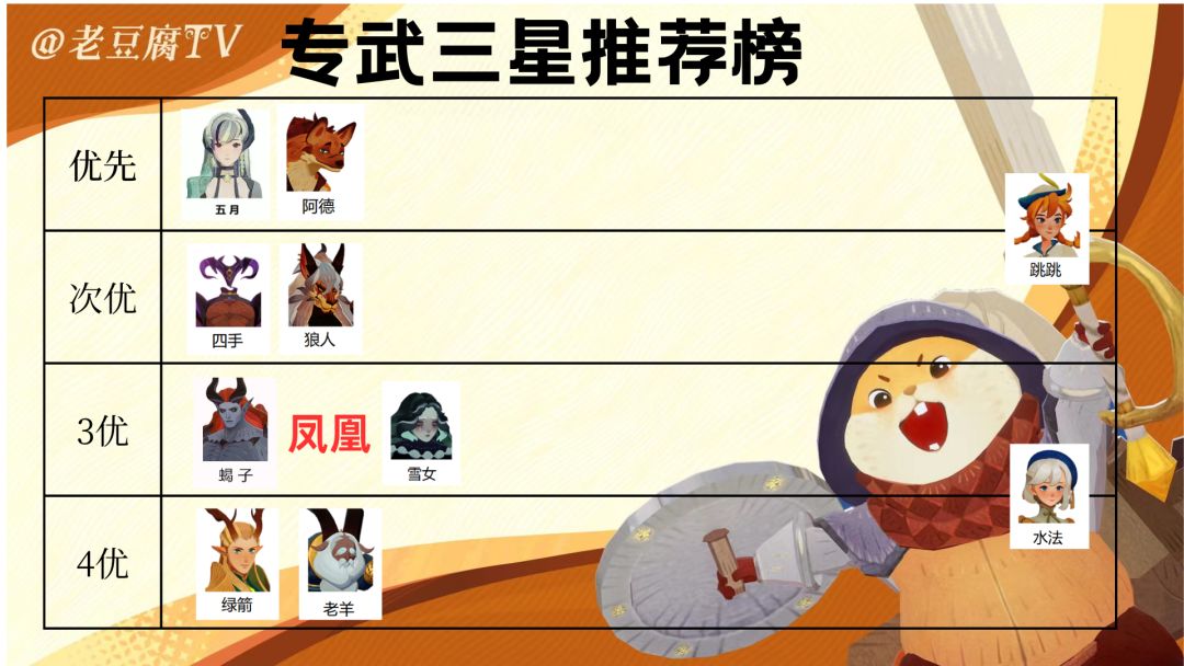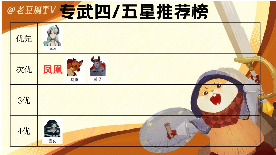第三梯队没有人,第四梯队是雪女,等大家后期,有十个以上三星的时候,可以考虑拉一下雪女四星。