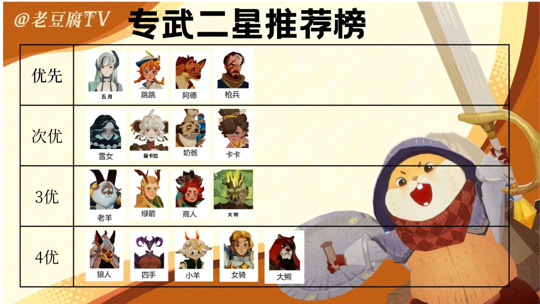 第二梯度是四手和狼人,四手三星增加传送单位的减伤,狼人三星以后,大招可以为队友提供攻击力加成。
