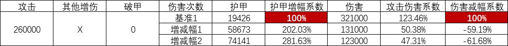 我做了一组数据比对,在对方26万攻击,0破甲;我方0格挡,0减伤的情况下,