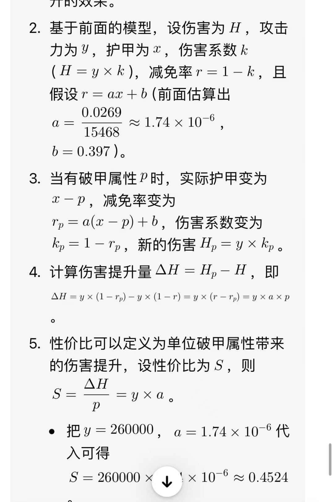 得出结论是护甲减少是反比例函数,理论上是50%的破甲得到提升比例是最高的。(这里再次感谢专业靶喵喵、叶秋同学)