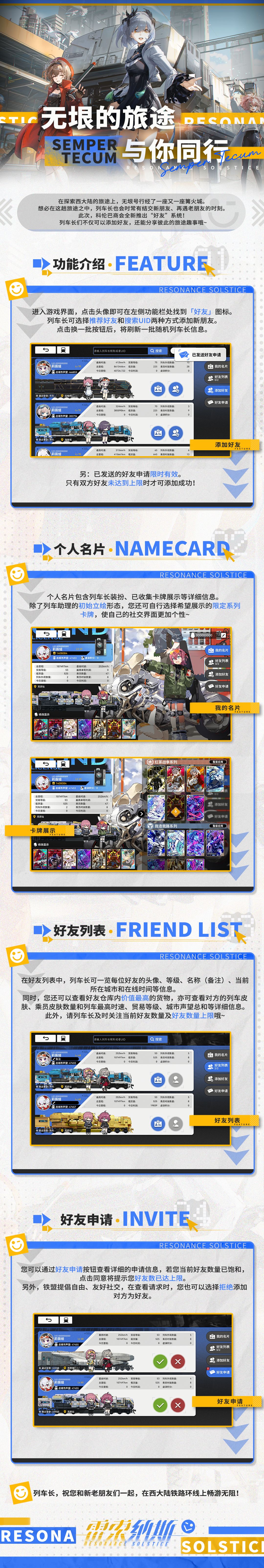 此次,科伦巴商会全新推出“好友”系统!列车长们不仅可以添加好友,还能分享彼此的旅途趣事哦~