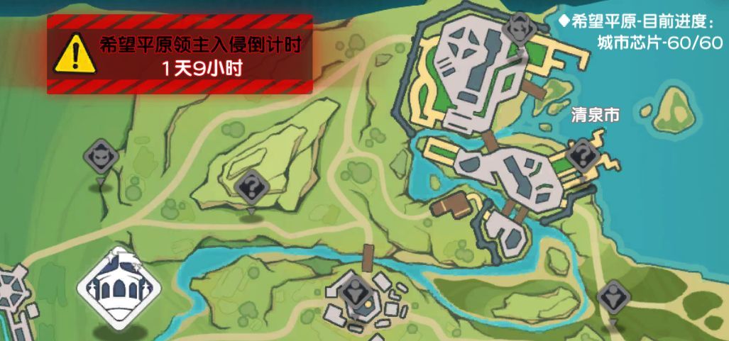 右上角是芯片解锁进度,进度满的时候开放左下角据点。