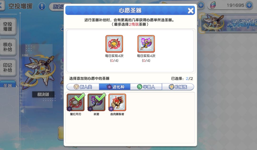 两个心愿空位,根据自己圣器情况及时调整心愿。