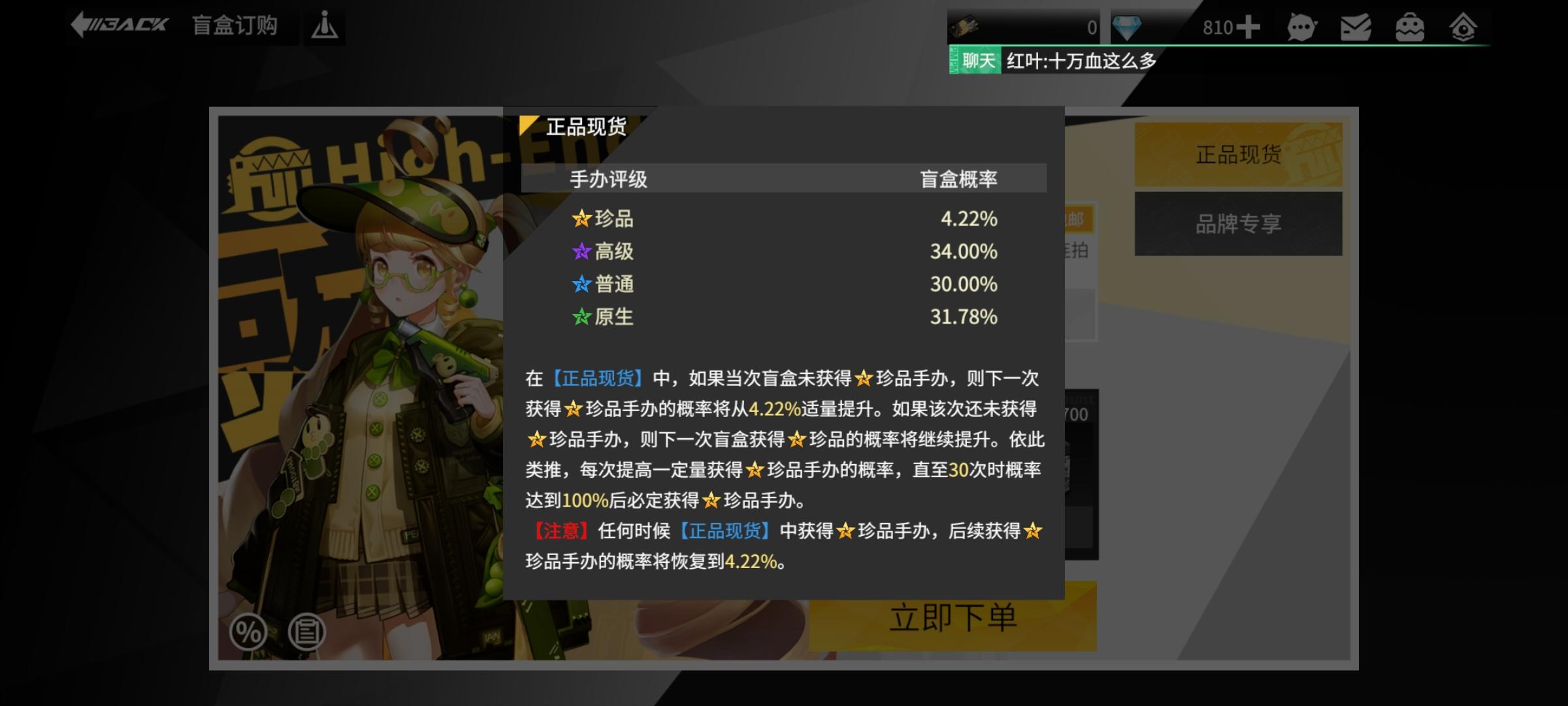 依照说明,抽出橙之后是重新计算爆率的,是从橙之后的下一个手办开始(杠精勿扰)