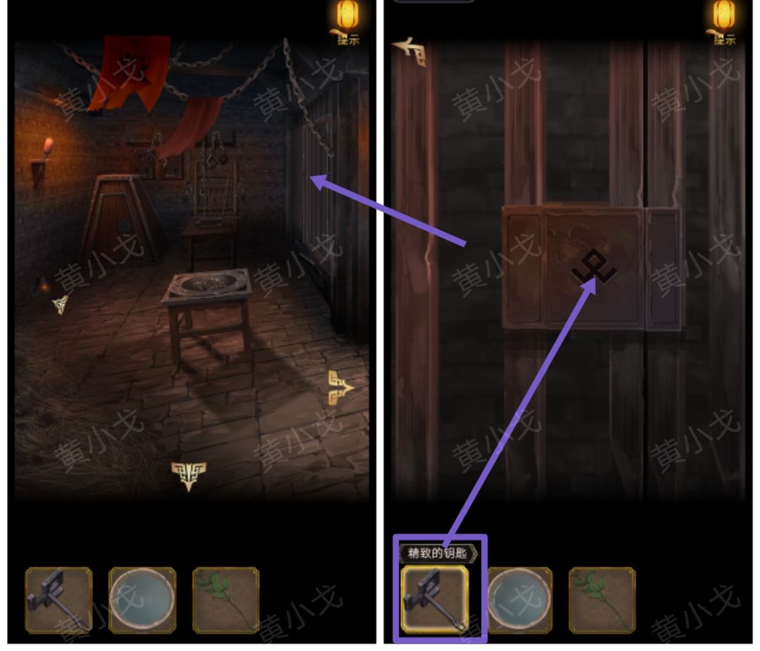 ▶️点击牢房的门,用【铁钥匙】打开