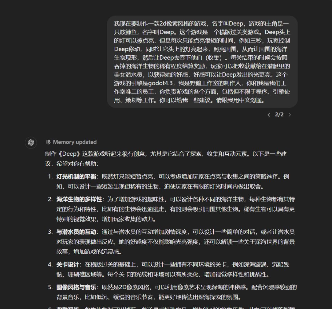 一直以来我会使用ChatGPT来协助自己进行游戏的开发,我甚至创建了一个自定义GPT,让他熟悉godot4.3,并把代码的编写交给他,同时我会和他讨论引擎的使用和游戏的一些策划的内容。他就相当于我的Jarvis。