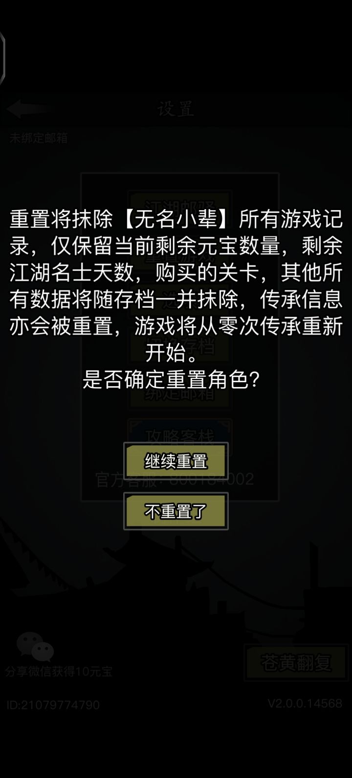 想刷开局,点这个重置游戏吗?但是提示邮件会丢失。但是如果领取邮件礼包,又提示已领取的礼包会一并删除?看不懂了
