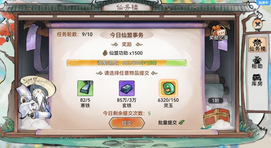 加入仙盟后,即可解锁仙务楼玩法。(其实仙务楼也有很多小细节,包括帖主都是踩过坑的。)首先,我们来看看每日的日常之一——仙务楼提交物资。