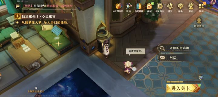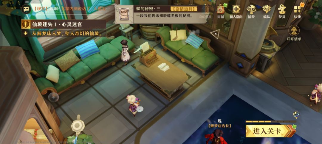 大厅地图各处可以跑,某些交互物品有闪光,点了可能获得剧情物品,在梦剧那边可以兑点蚊子腿抽