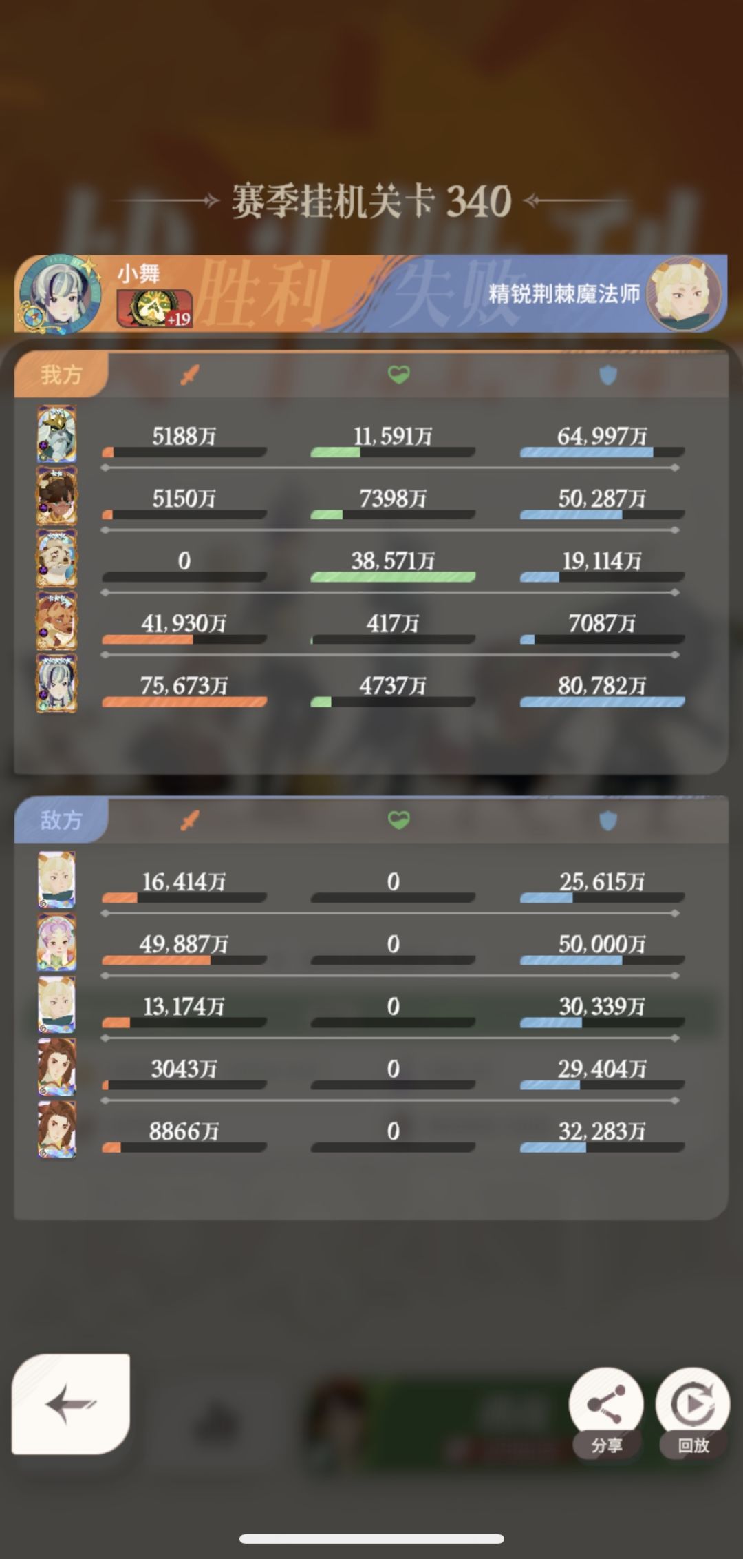 小舞上传的pvp图片中可以看到五月的伤害非常可观,因为五月的技能成长特性,保证五月的生存能力非常重要,所以小舞上阵了多个辅助类英雄,五月在推图中表现也格外亮眼,是全队的主C,配合阿德收割机非常好用!小舞觉得五月是当之无愧的人权卡!