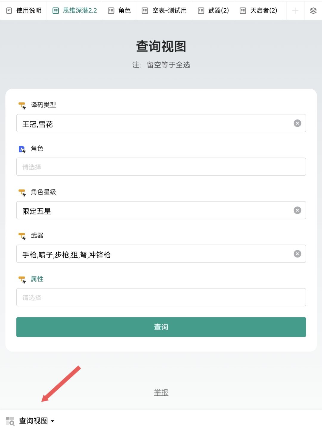 如图,根据自己的需要打勾就行,留空等于全选(直接略过)。熟悉Excel和多维表格的可以跳过这种基础用法,点下图的箭头切到表格视图进行自定义筛选。
