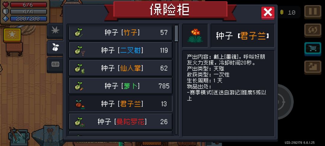 小黑:手刀伤害为3。手持轨道炮类武器时攻速+20%,手持投掷类武器时击中敌人将附加随机异常状态。特殊效果为帮玩家拾起种子,每拾起5个种子获取厨娘的一道菜。进入下一大关时给予玩家配件便携式烤炉。