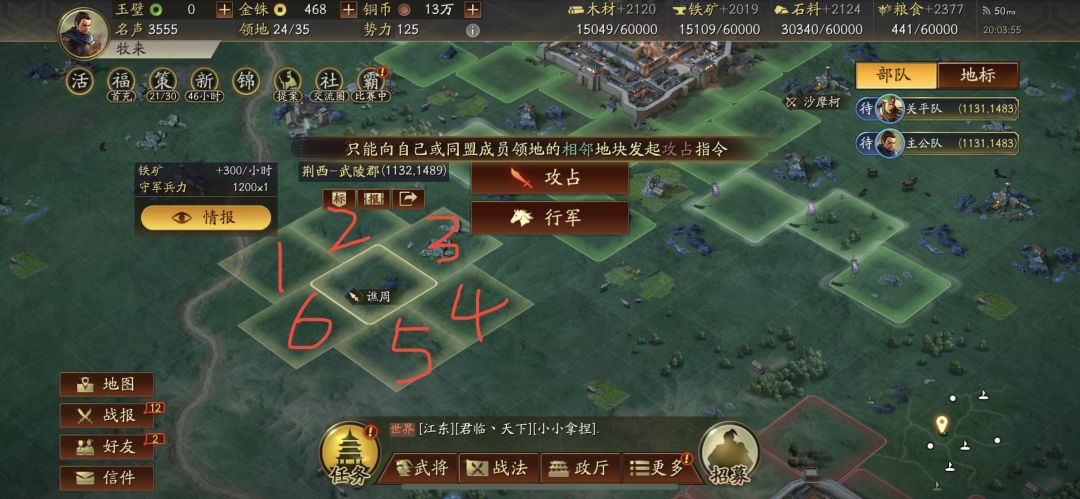 注:占领的时候不能跨越式占领,需要周围以攻占或者有同盟地盘才可以。所以及时加入同盟是至关重要的。
