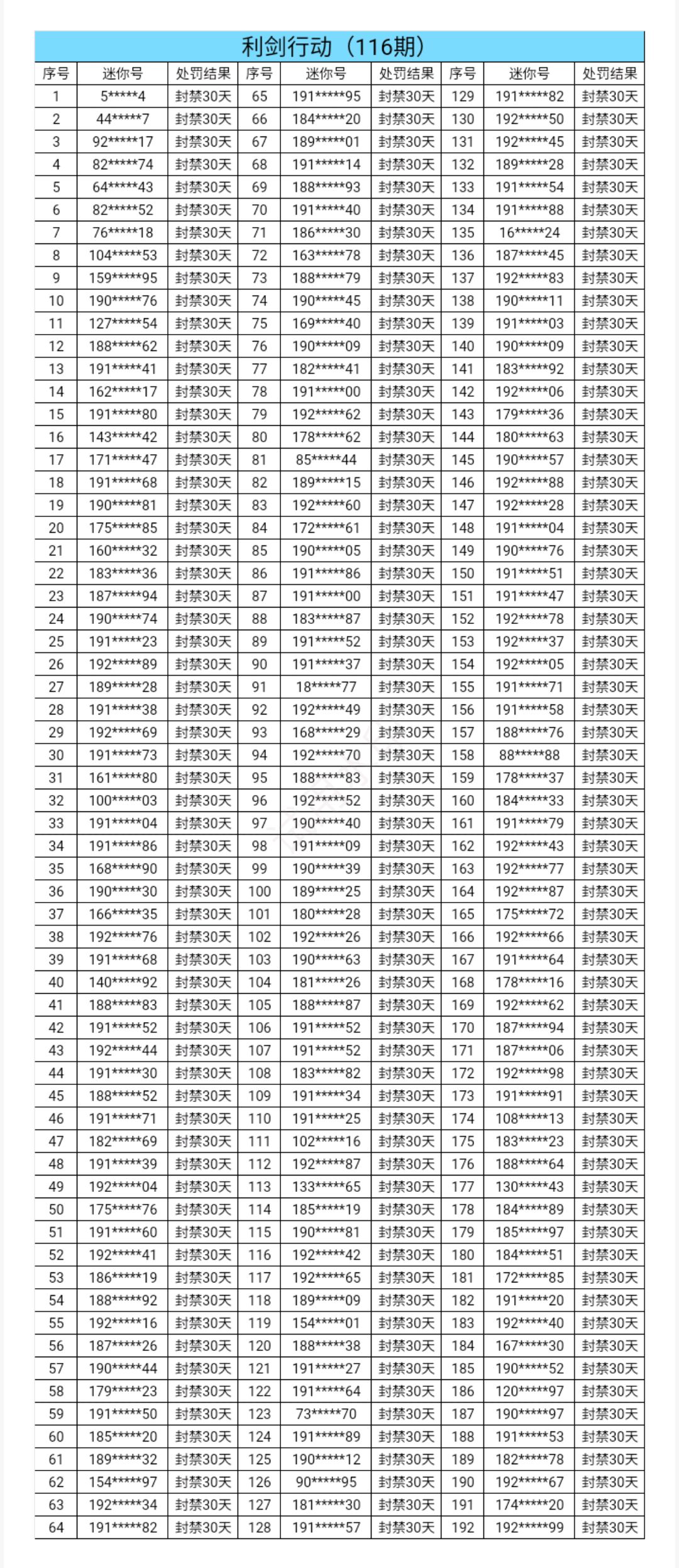 【利剑行动】“作弊软件”处罚名单公告第116期