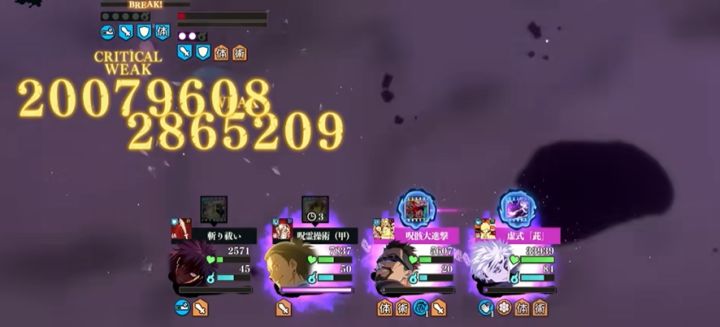 强敌战途中没状态可以用夏油杰的樱花回一下,期间不断用1技能付与dbuff,五条继续用3技能边攻击边加buff。等5条必杀槽快满的时候(伏黑惠应该已经可以了),夏油杰用2技能附上dbuff,校长还是2技能。之后伏黑惠先用领域展开破防。这时候应该有人罚站了,先用校长的大招,再用夏油杰和紫五条的连携必杀(开回想)。