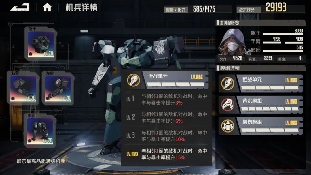 首先是拆机中的当红炸子鸡“强电场”......这个机兵就基本上只剩下被拆的命运,而且被拆后的“近战单元”模组的泛用性还相当之不错,例如给芙烈达、马库斯、奥菲利亚等角色都可以很好的适配,并且在未来这个模组的保值率也应该很高,毕竟现在数值的疯涨,越来越多的机师可能都在向暴击率方面靠拢了,此外命中率的意义也自不用多说,大家都懂。