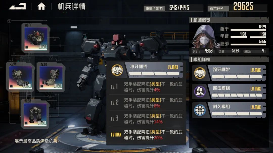 接着第三个也是轻甲中经常被拿来拆的“恐爪”,这个机兵自己升到彩色的意义其实并不大,而且外加出的又比较早,所以它那优质的25%增伤上限就成了个香饽饽,基本上高命中的机师都可以适用,且在未来的泛用性也不会低,真是万金油一般的存在。