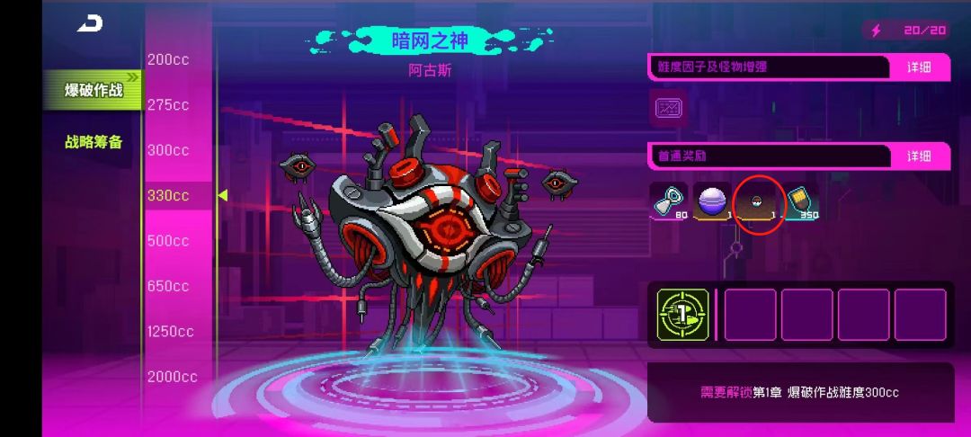 需要先通关爆破作战200cc、275cc、300cc、330cc、500cc、650cc、1250cc才可以打