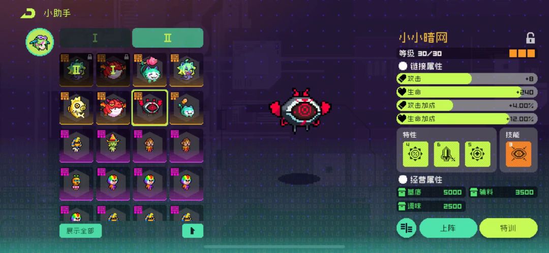 可以看出,小小暗网只加8点攻击,攻击加成为4%,而肥火龙加12点攻击,攻击加成为6%,不要小看这点攻击力的差距,如果放到噪音这种高基础攻击的角色上,最后能差10多点攻击力,所以建议如果不是收集癖或是颜控,最好把小小暗网的技能给肥火龙、咸鱼王或者朵拉朵拉(叮咚猫是加10点攻击,攻击加成为5%,不如肥火龙、咸鱼王和朵拉朵拉,所以不考虑喂给叮咚猫)