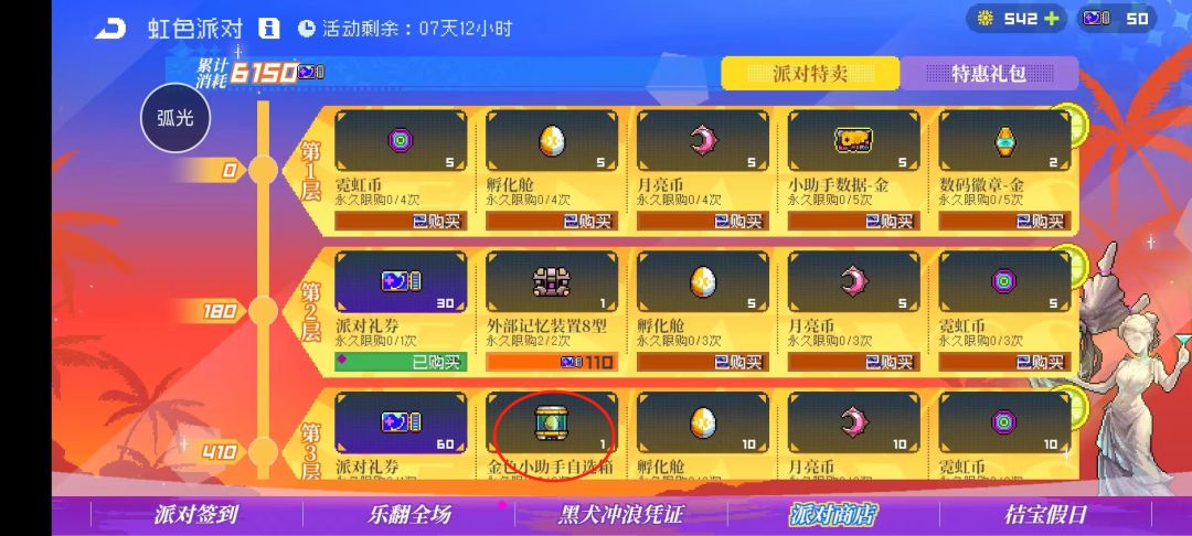 之前的虹色派对的活动中会有金色小助手自选箱,金色小助手自选箱中可以开出小小暗网