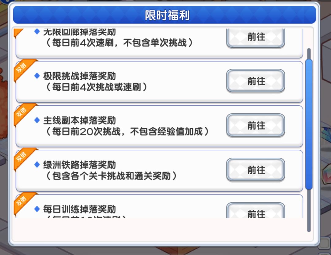 最后是限时福利,里面没什么可以直接拿的奖励,实际上就是双倍展示: