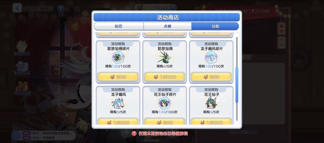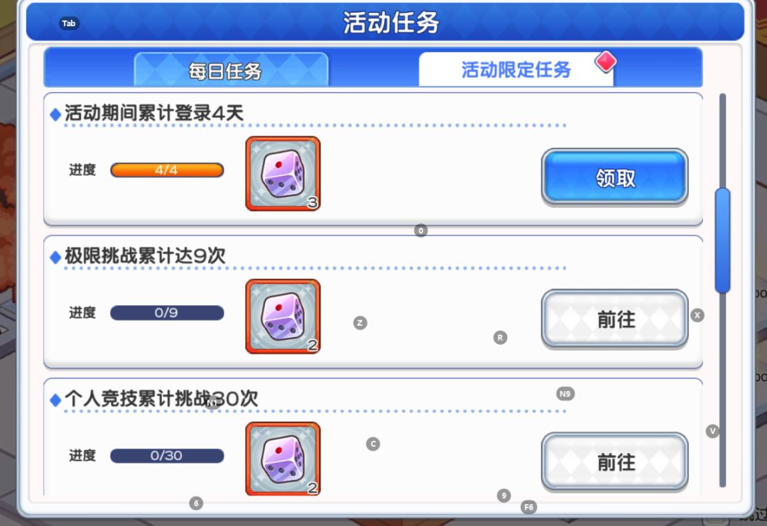 右侧是活动限定任务,也就是单次活动只能完成一次的任务,包含了以下几个任务: