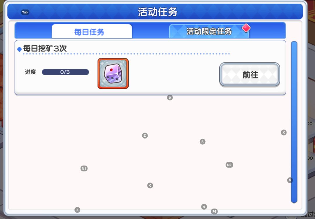 第二个活动任务,每日任务中是固定的每日挖矿3次,即完成此任务需要10钻石多挖矿1次的,奖励是1个骰子