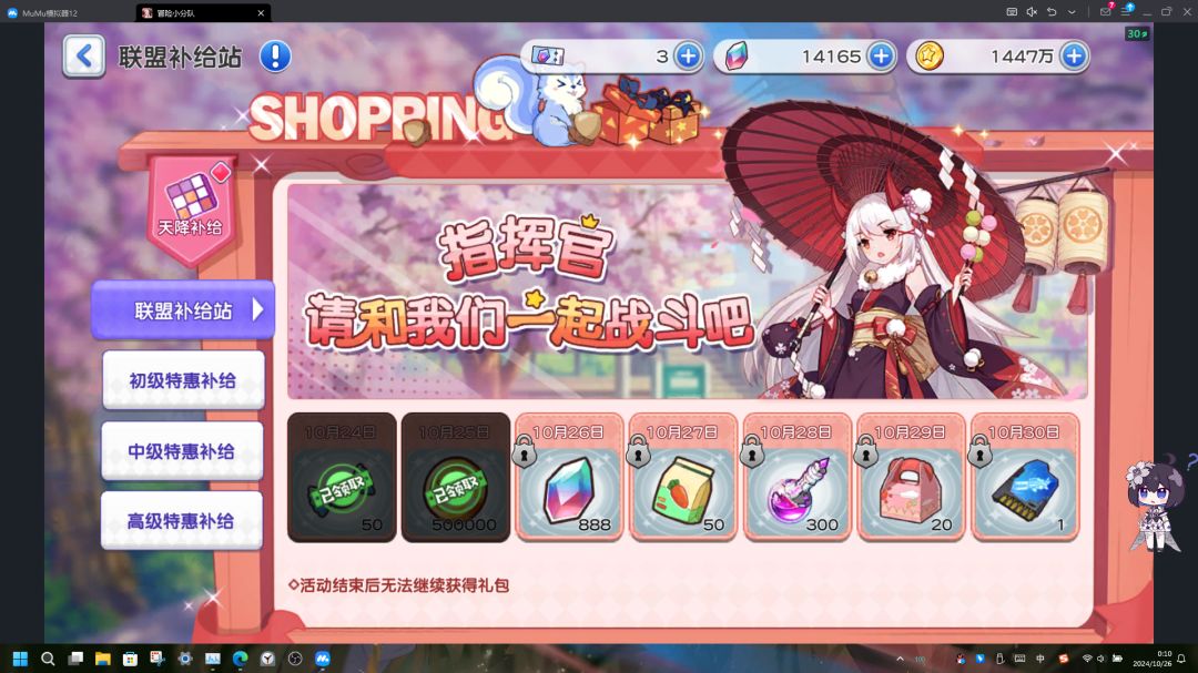 来到8级或是打到2-4后,会有一个“少女降临”活动,又3个任务,全部做完会给一只龙娘mini(