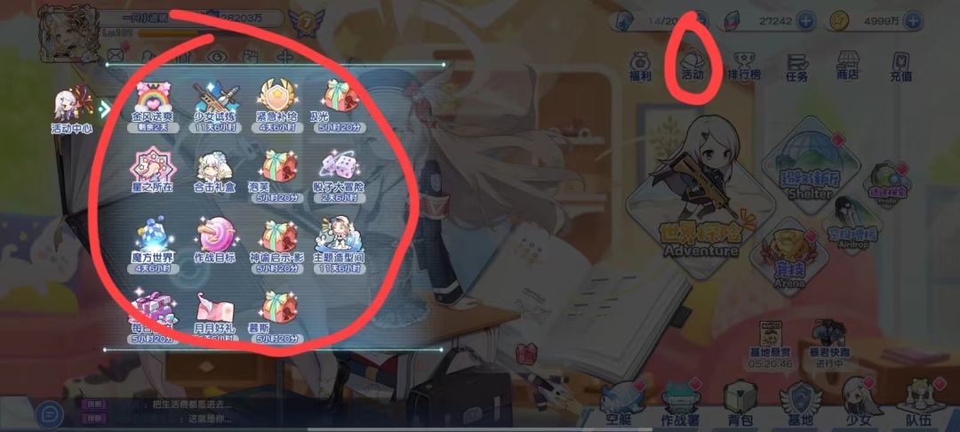 如图,即为我圈出的2处地方内含的活动(即战力充电处的活动不算入)